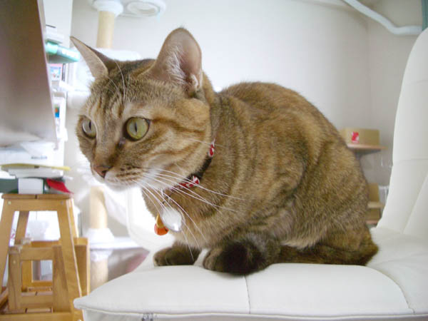 の膝の上に陣取るぴっち♀。何やら決意が伝わってきますが、