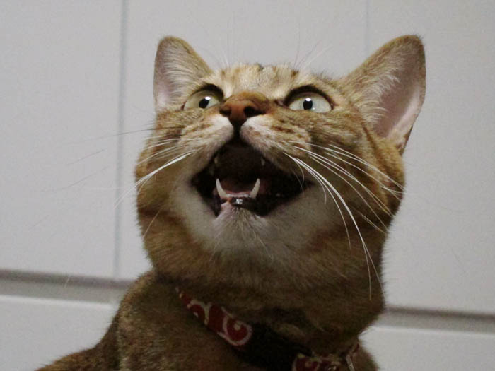 ぽっけ♂につられ、ゴハンコール中のぴっち♀。