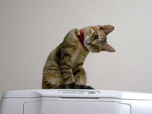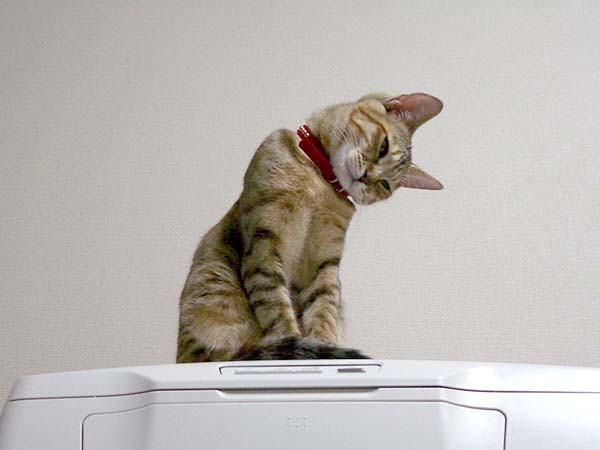 それはパソコンのプリンタの上です。