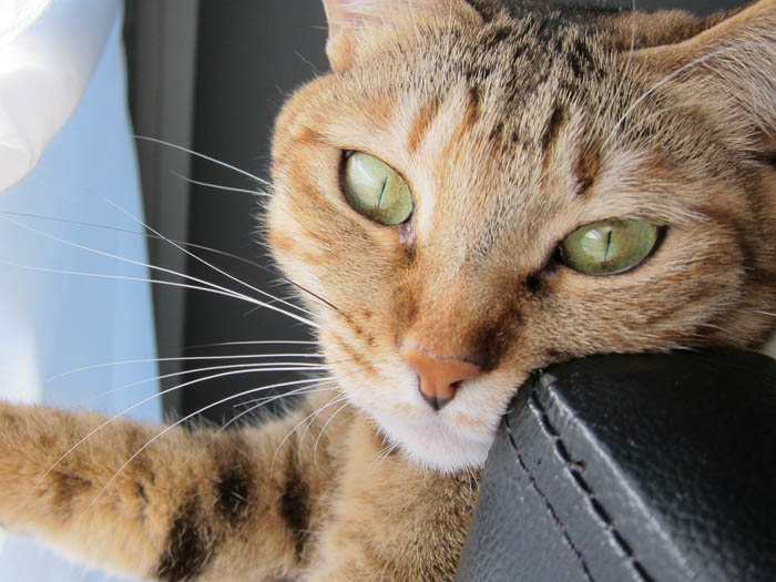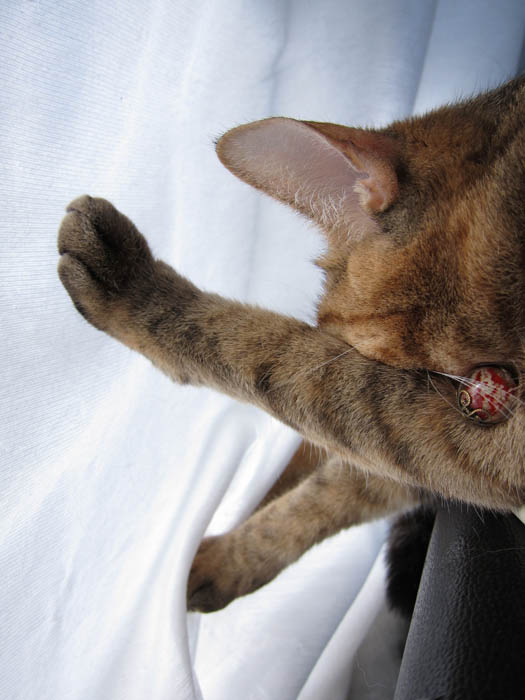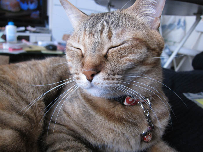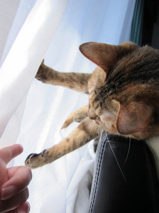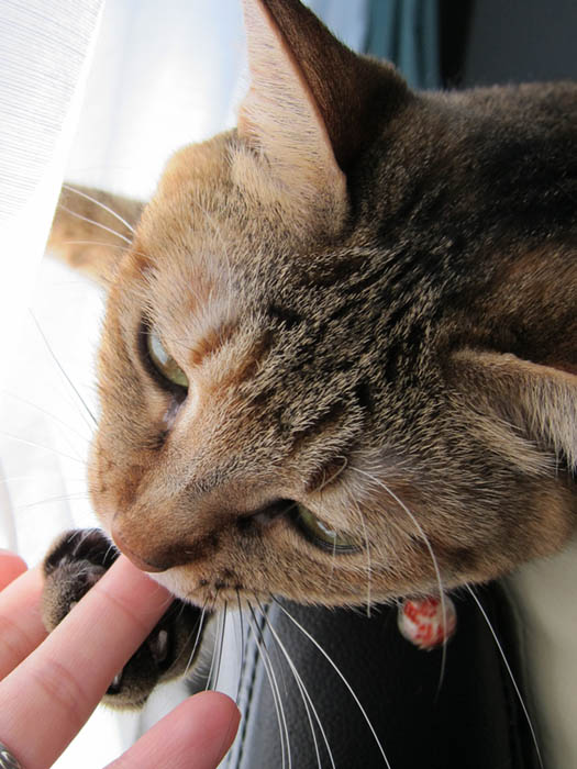 膝に乗って、お腹のあたりを前足でカシカシしたら、