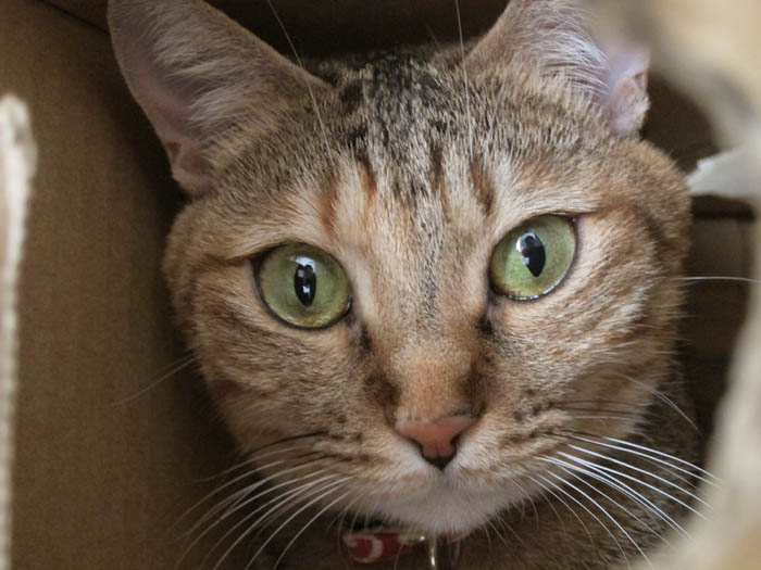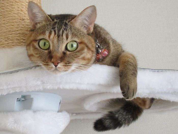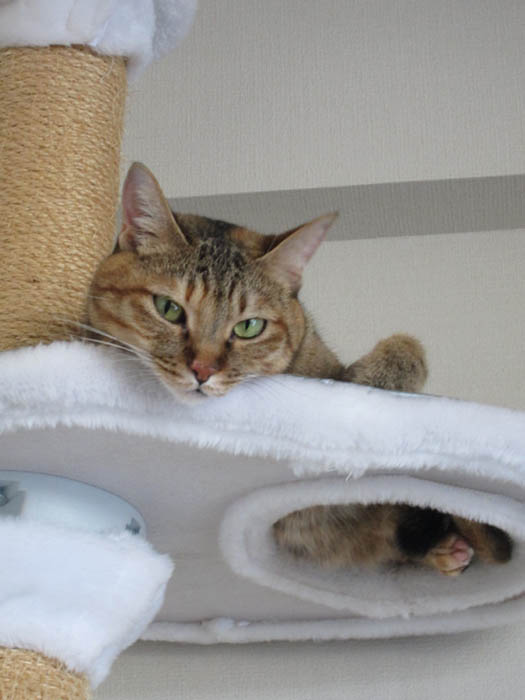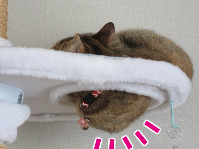 へ。猫タワーの穴からしっぽがたりーん。