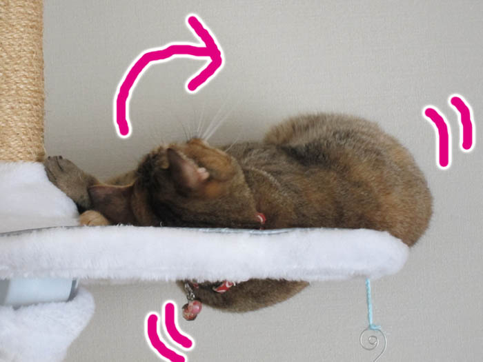 ダッシュで猫タワーに駆け上がって柱で爪とぎをした後、