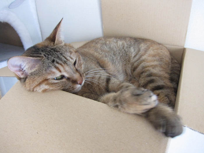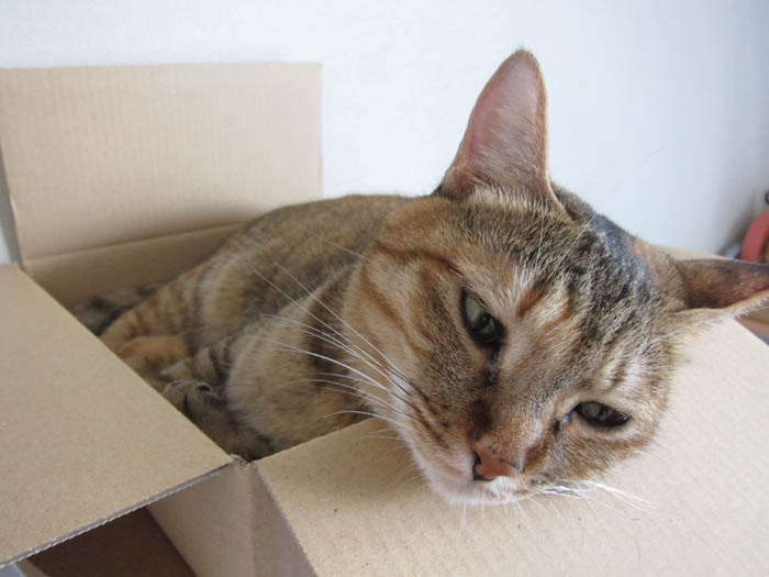 箱の中で体を横たえ、すっかり落ち着いていました。