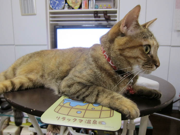 ミニテーブルの上に寝そべっているぴっち♀。