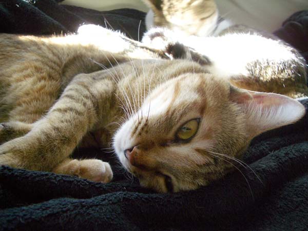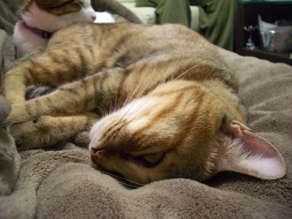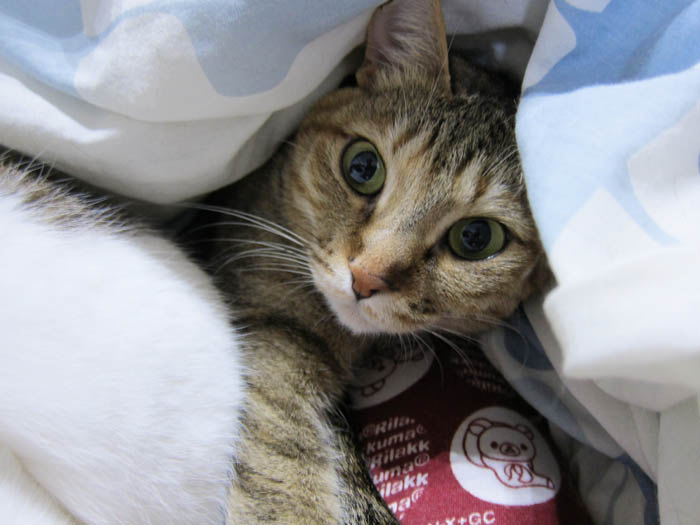 がいい味を出しています。羽毛布団に潜ってお昼寝していたぽっけ♂が