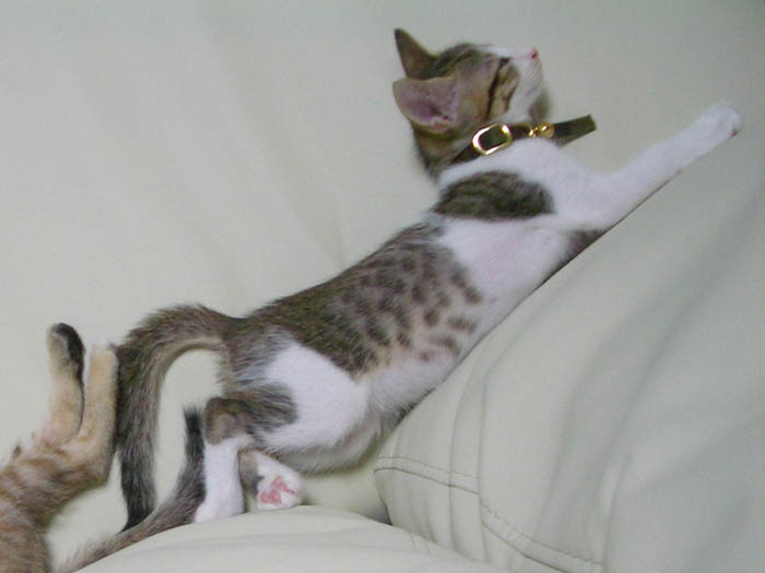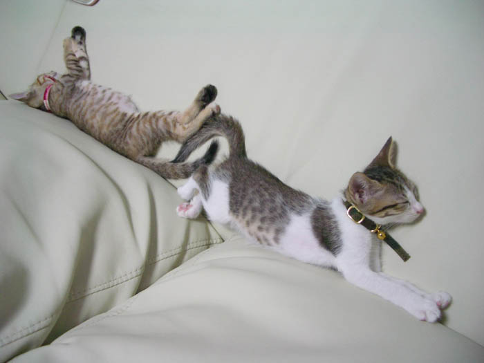 )を試みるぽっけ♂。ぴっち♀ 「ぽったん、もうムリなのニャ~