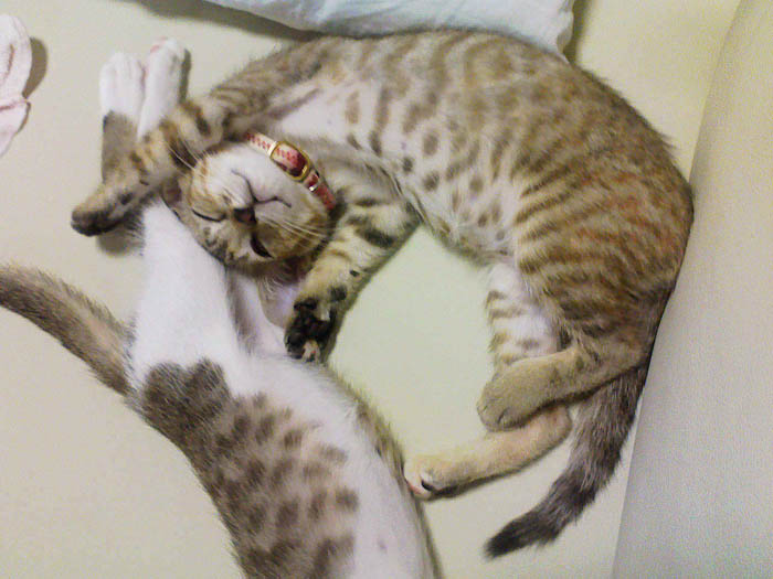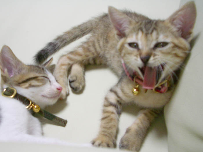 行きと同様、帰りの車の中でも2匹ピタリとくっついて、静かにしていました。