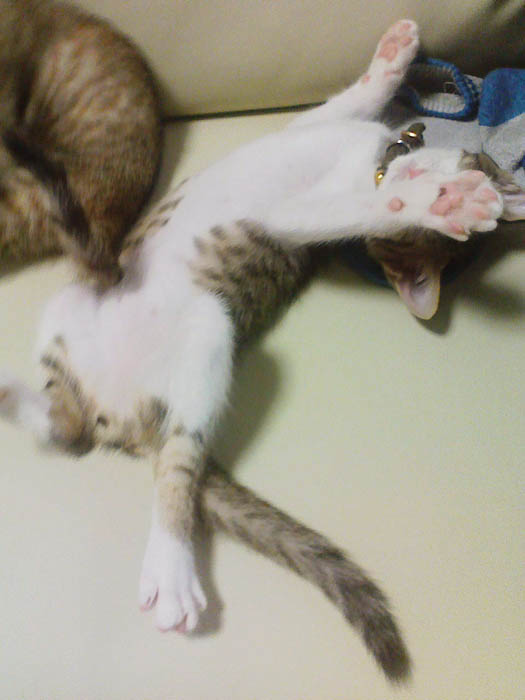 」とでも呼びかけたのでしょうか。ぽっけ♂よりは動いたりしたものの、爪を出したり暴れたりすることもなく、大人しくて良い子でした。