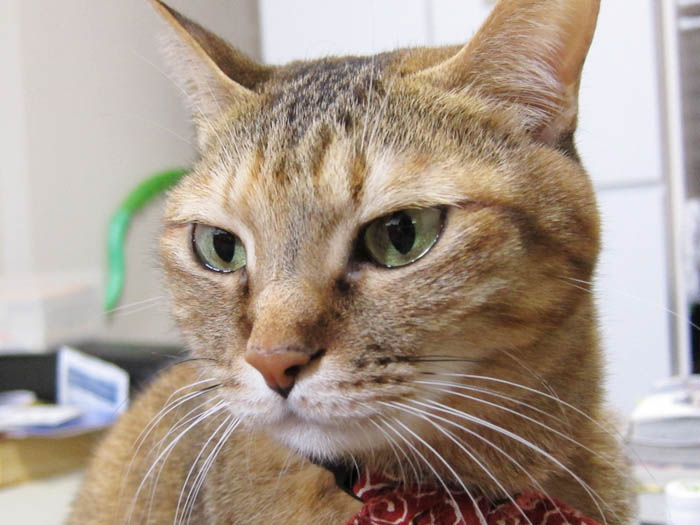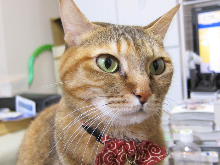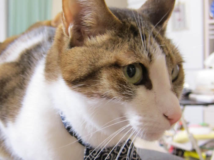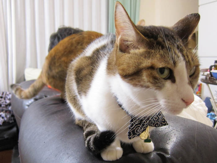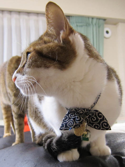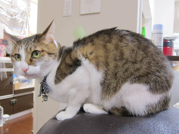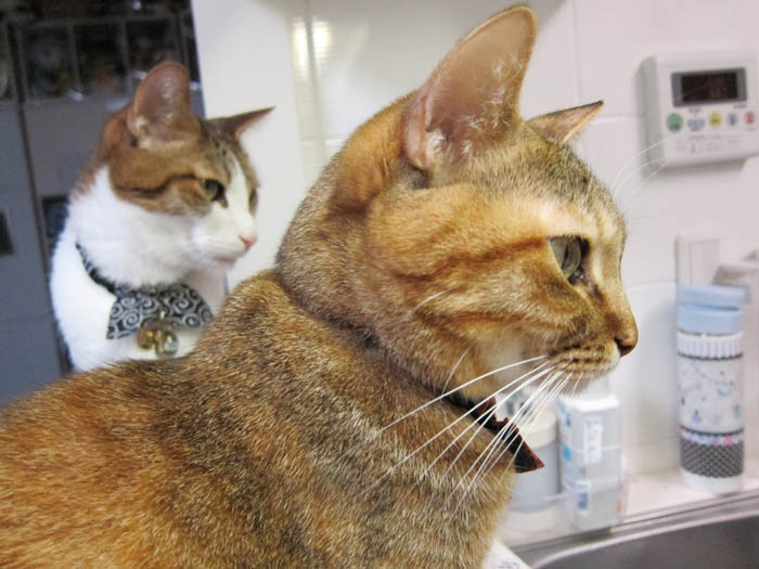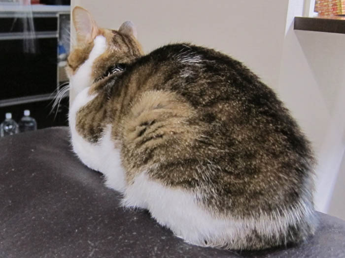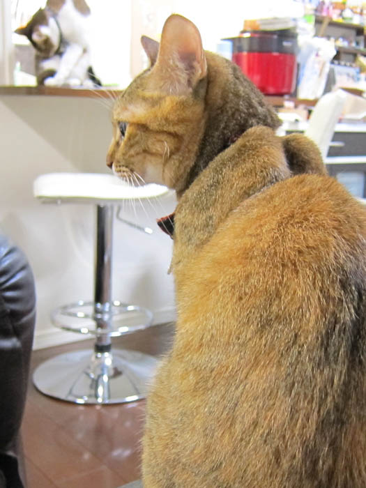 奥のカウンターではぽっけ♂が毛づくろいをし、
