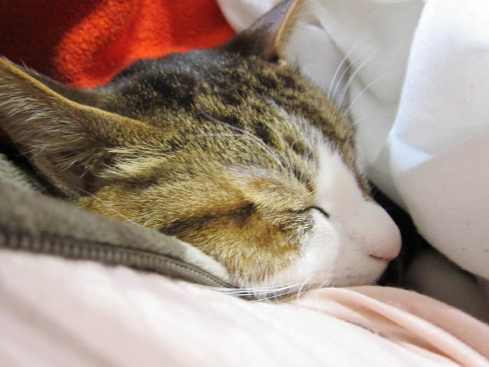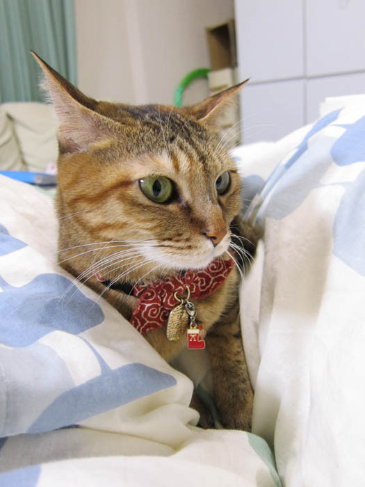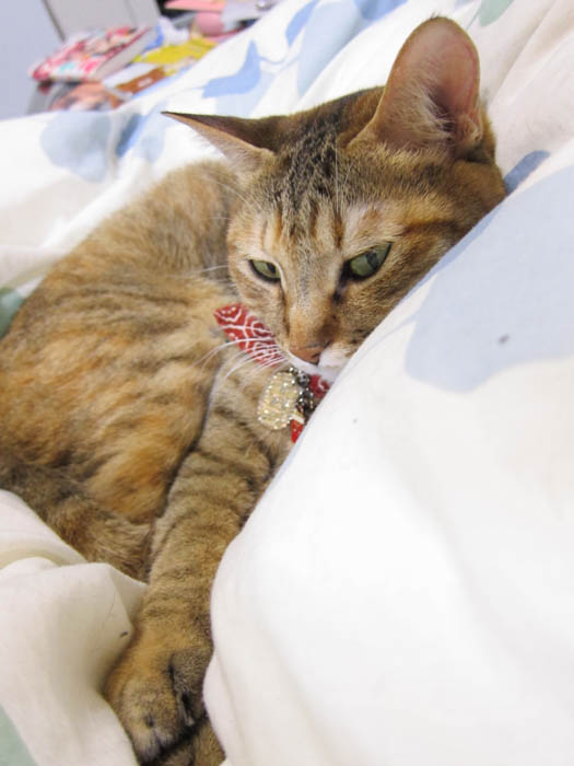 2009年 12/26(土) 497日目のぴっち♀とぽっけ♂ ~布団がすき~ようやく2匹が一緒にお昼寝できました。エリザベスカラーの置き場がポイントです。
