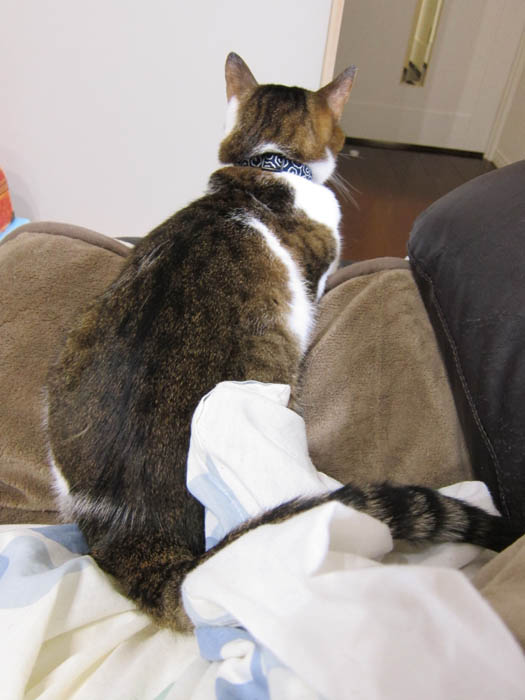 ぴっち♀は窓際ソファーでテレビを見ています。