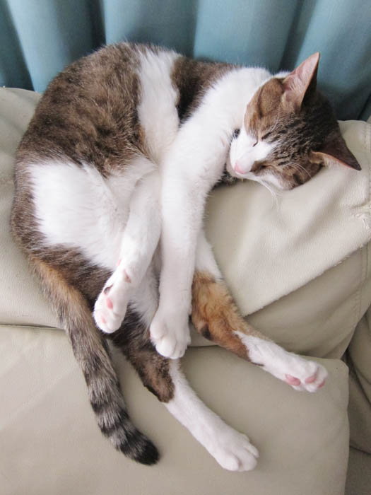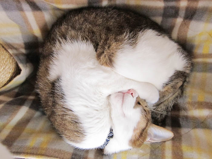 2011年 12/26(月) 1227日目のぴっち♀とぽっけ♂ ~久々ロールケーキ寝3~ぽっけ♂はスフィンクス座り⇒香箱座りへとシフトした理由。ぴっち♀はキャラメルロールケーキ。