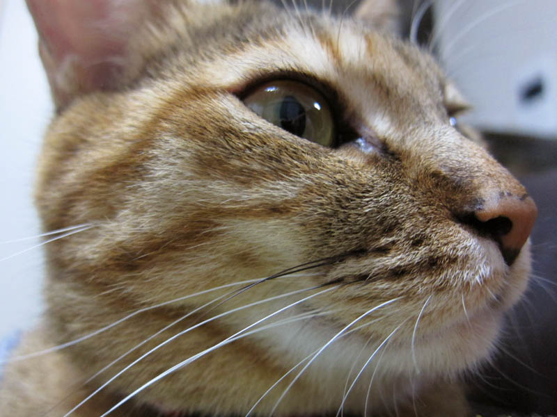 扉の向こうを警戒中のぽっけ♂。