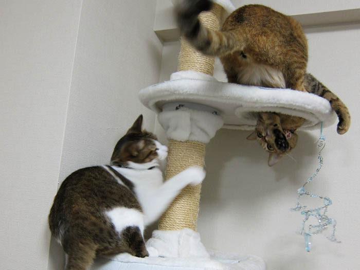 ダッシュで猫タワーに駆け上がりました。