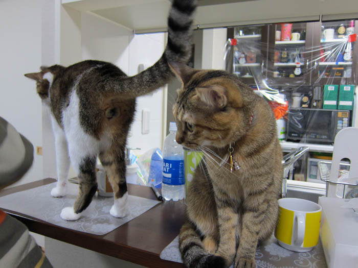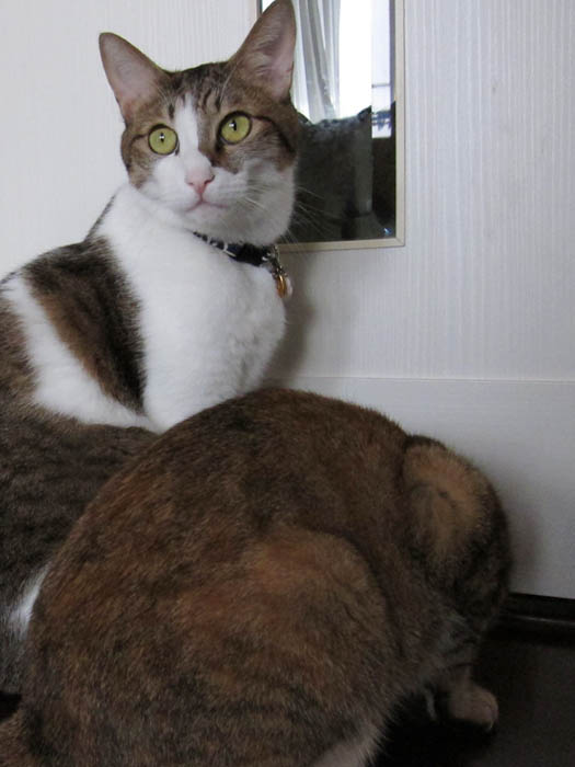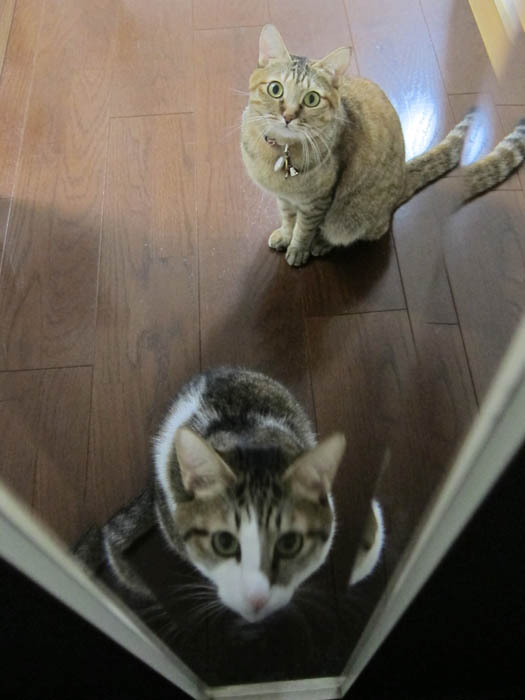 まだドアの前でじっとこちらを見ている2匹。