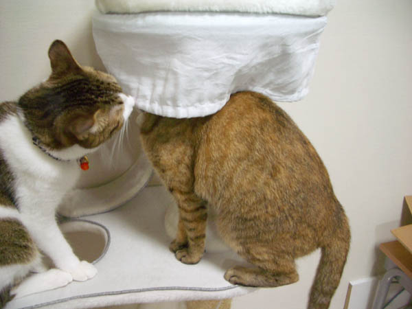 2009年 10/22(木) 432日目のぴっち♀とぽっけ♂ ~あんにゅい?~抱き合って真ん丸の【猫玉】になった2匹。そこから……ぐい~ん