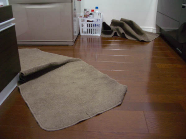 毛布やフリースを噛み、
