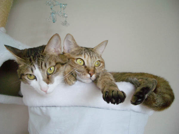 どちらもフチに顔を乗せてにゃふ~んとしています。