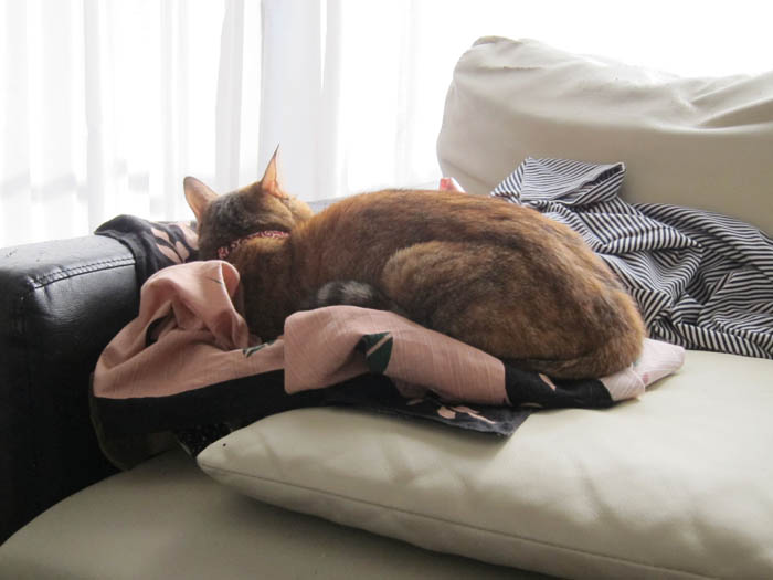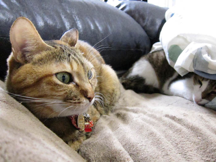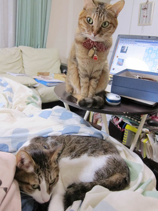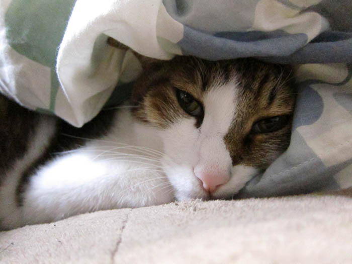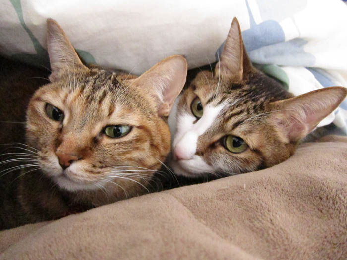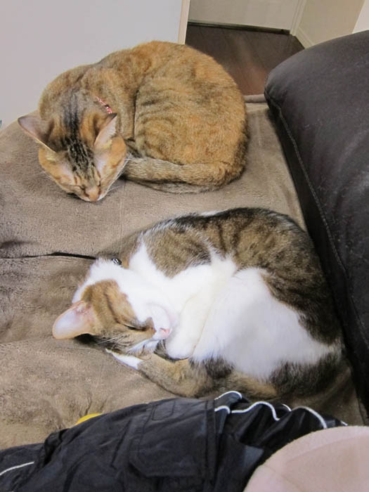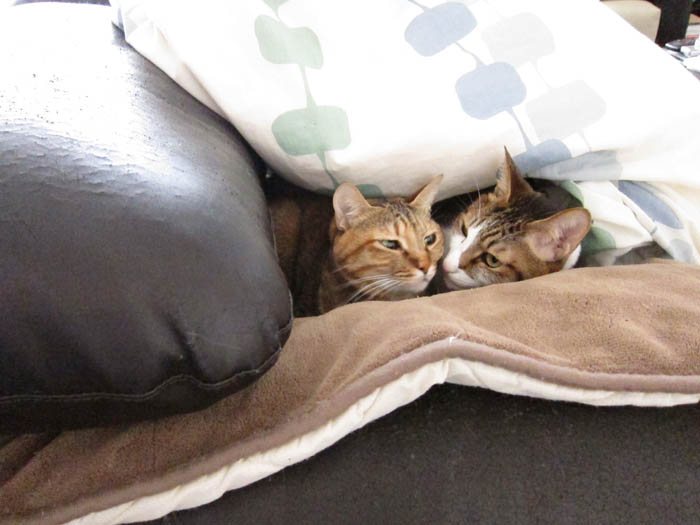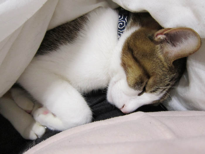 2012年 12/18(火) 1585日目のぴっち♀とぽっけ♂ ~ホット猫~ホットマット+羽毛布団の最強コンビを下敷きにお昼寝する2匹。全部が暖かいです。