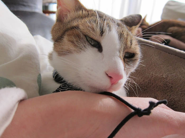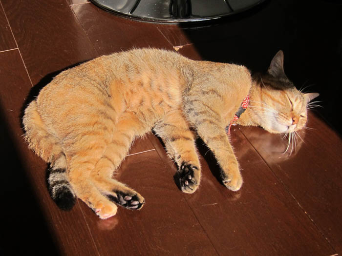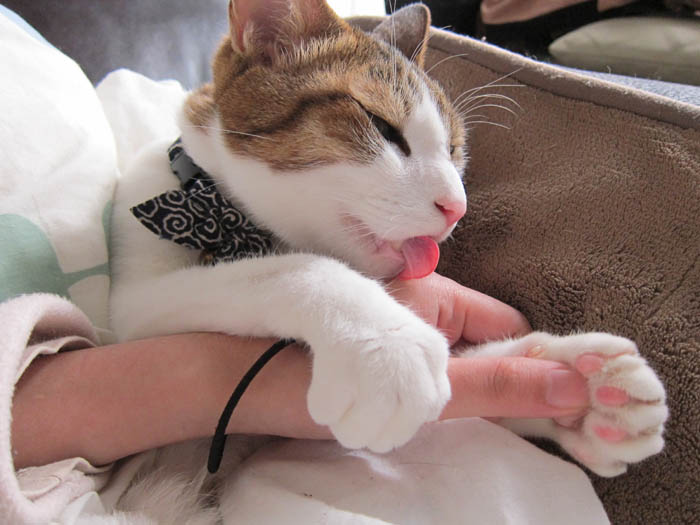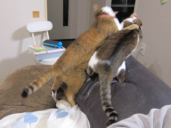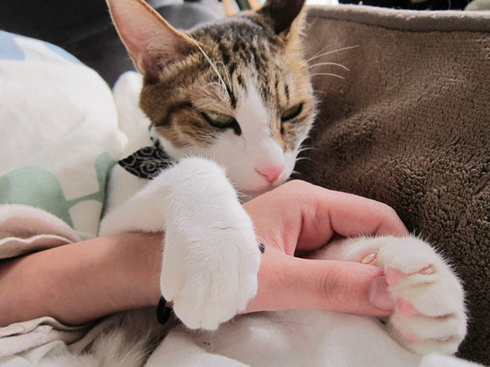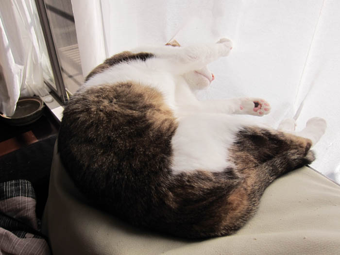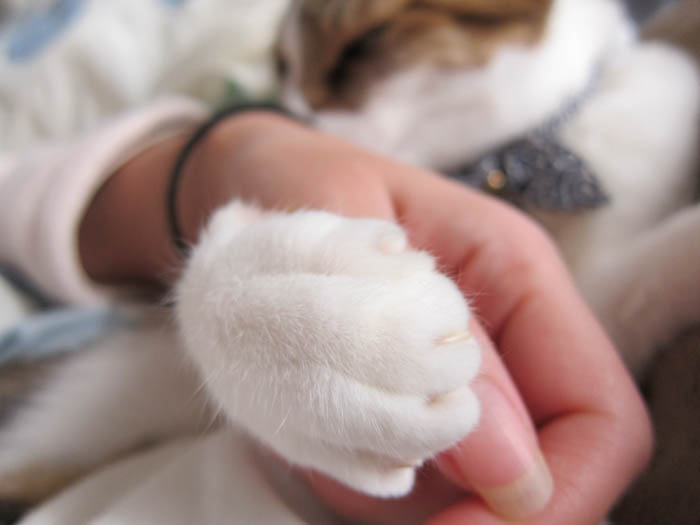 2010年 12/17(金) 853日目のぴっち♀とぽっけ♂ ~肉球の温め方~ぽっけ♂流肉球の温め方をご紹介。ぴっち♀は窓際でふわふわ毛づくろい。