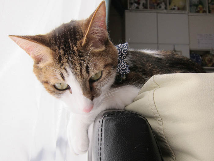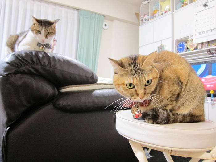 ぽっけ♂は座面に、ぴっち♀は肘置きに。