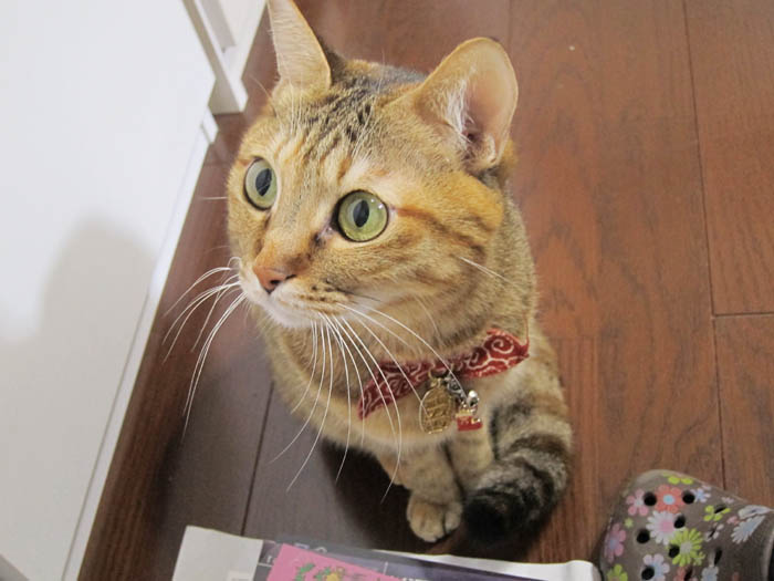ゴハンを求めて不退転の決意のぽっけ♂。