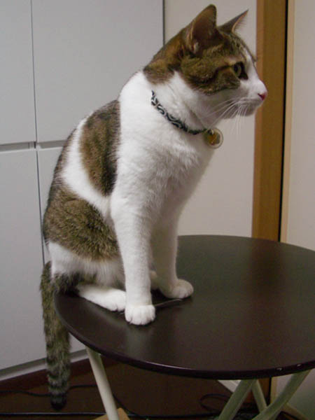 お楽しみの朝ゴハンとを食べ、毛づくろいも終わった後。