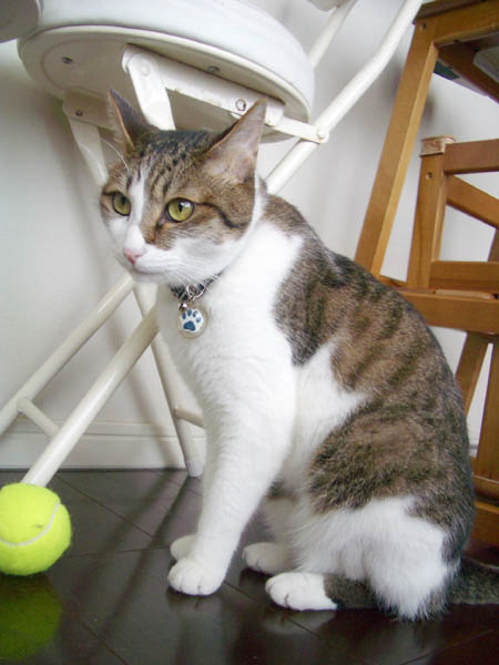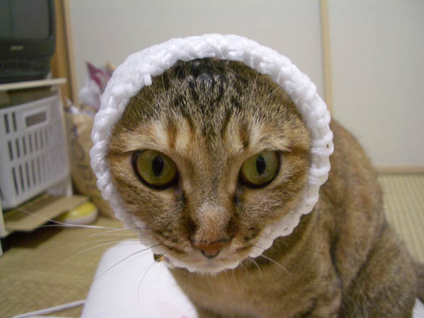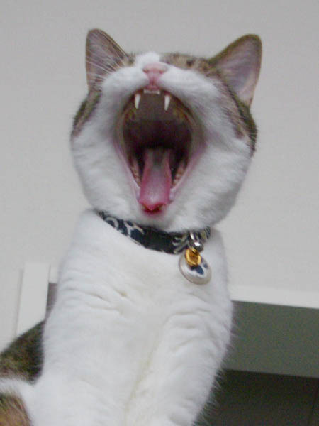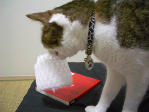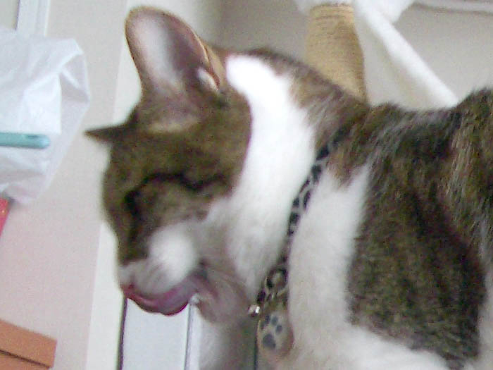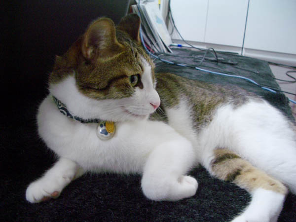 (写真右)はちょっと焦げたクリームパン。寝転んだまま、柱で軽~くツメとぎをしてみたり。