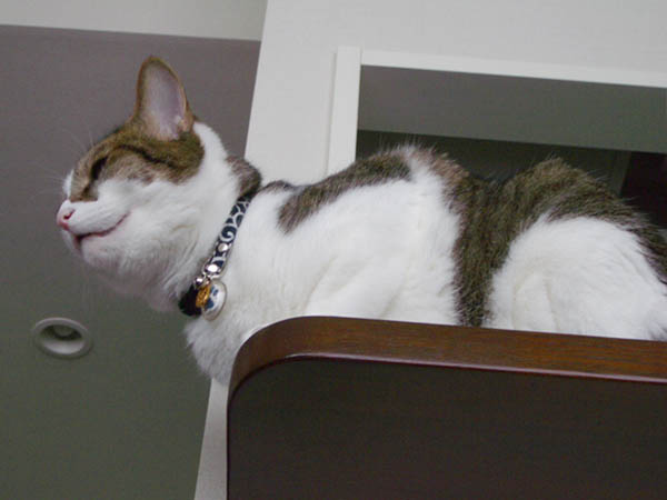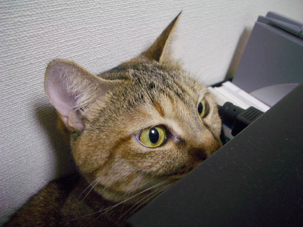 よく隠れる机の下にもいないし、変だなぁと思っていたら……。