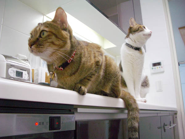 和室にいた2匹は、滅多に鳴らない(笑)インターホンの音に大ビビリ。