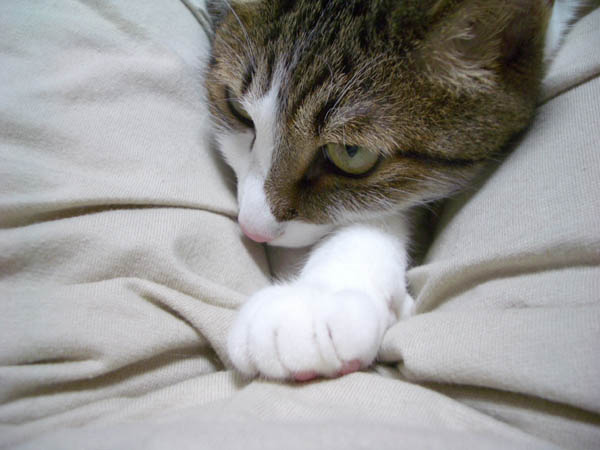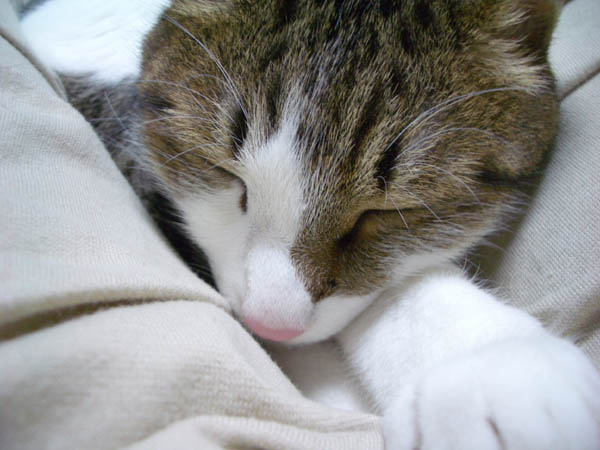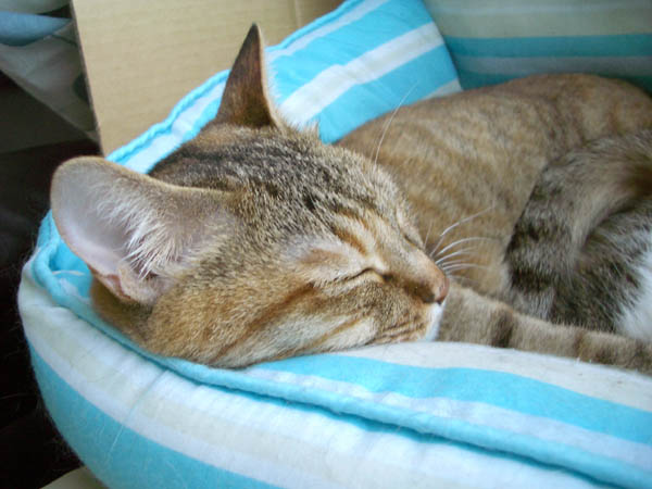 体勢を変えて、再び猫ベッドに落ち着きました。
