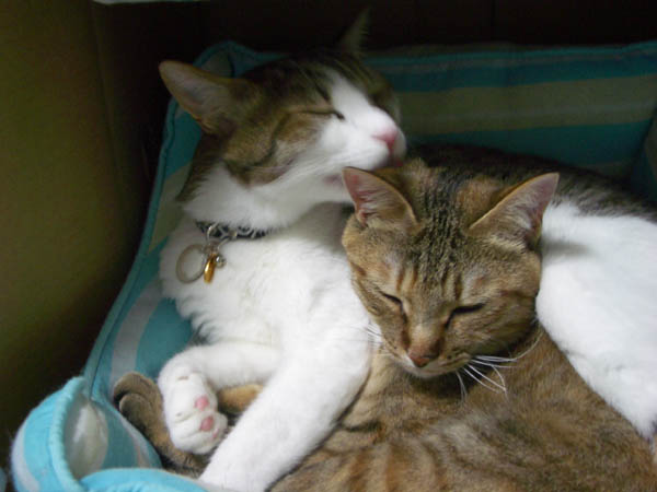 布団に包まれればこの通りの2匹。
