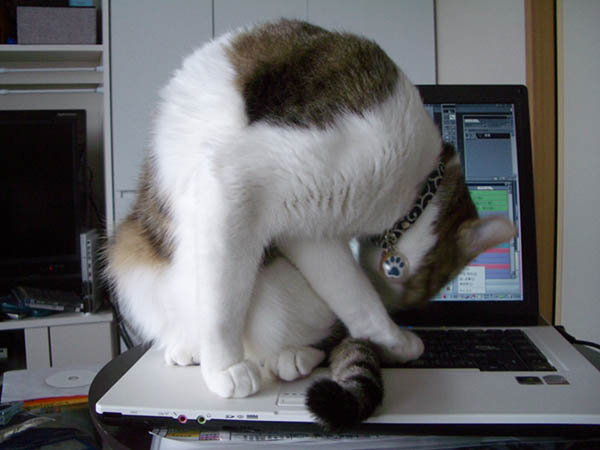 ノートパソコンの上に乗って、画面をふさぐ