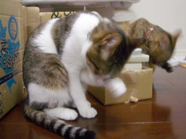 8/21(木) 5日目のぴっち♀とぽっけ♂ ~猫タワーと駆虫薬~