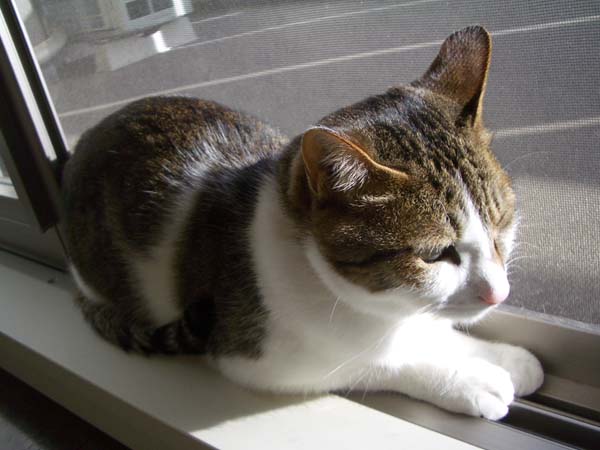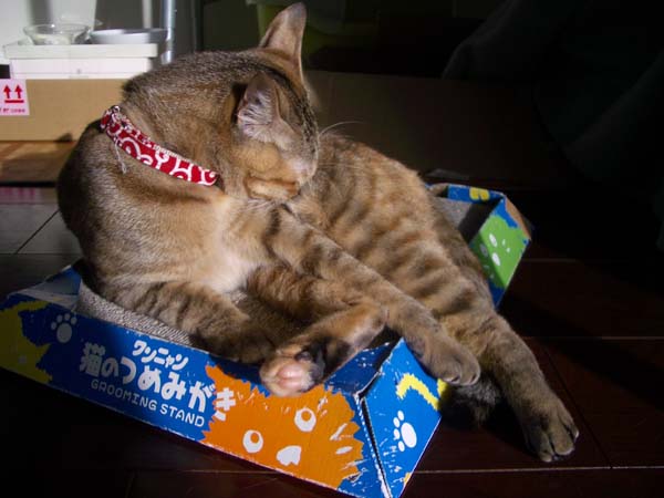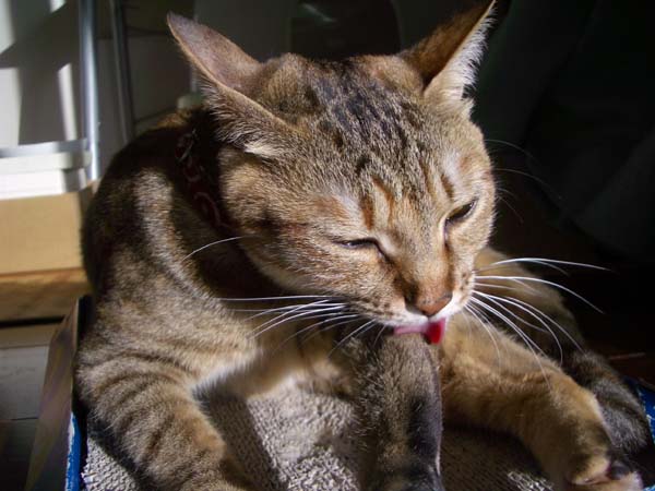 のんびりと毛づくろいをするぽっけ♂。