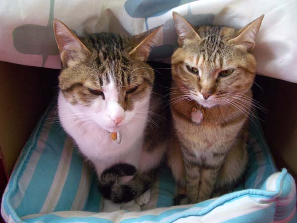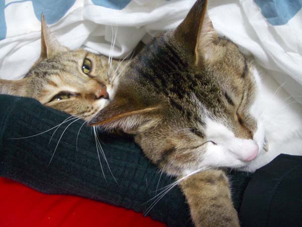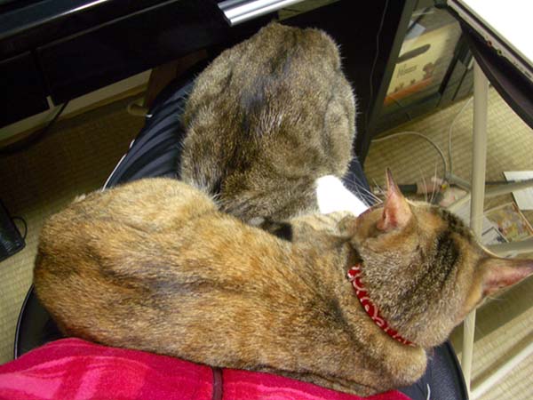 の膝に2匹盛りですが、たまーに2匹別々の時もあります。