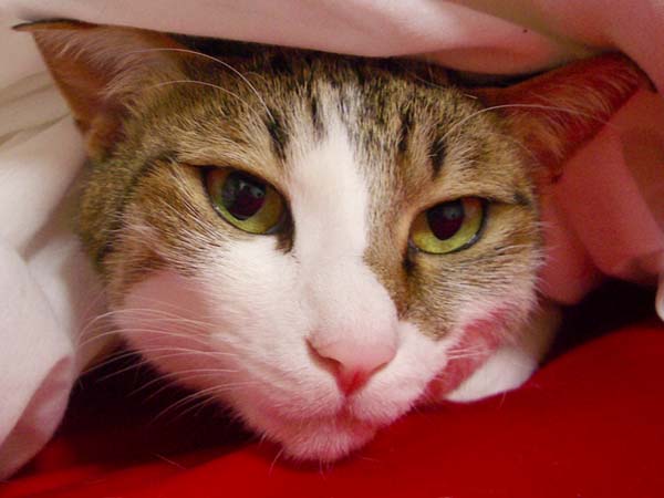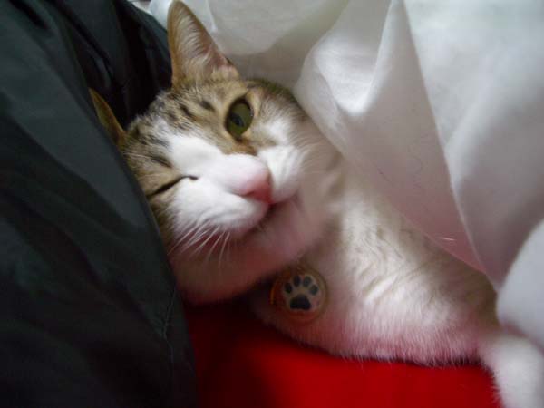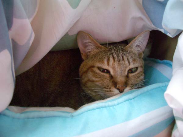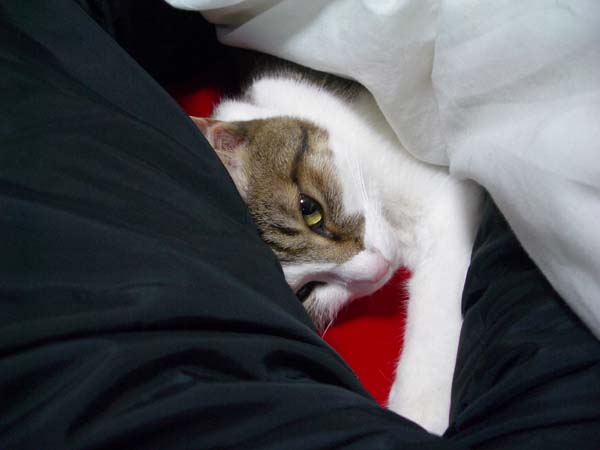 ぽっけ♂の安息の地、それは羽毛布団の中。