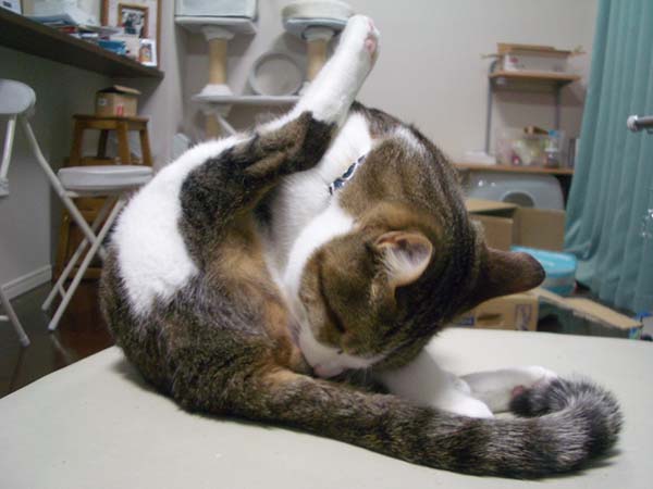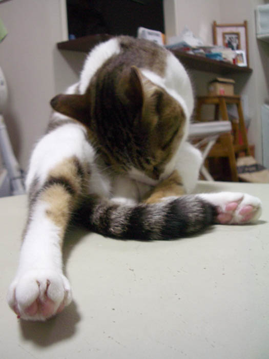 真上に上げていた左後足をすーっと下ろし、