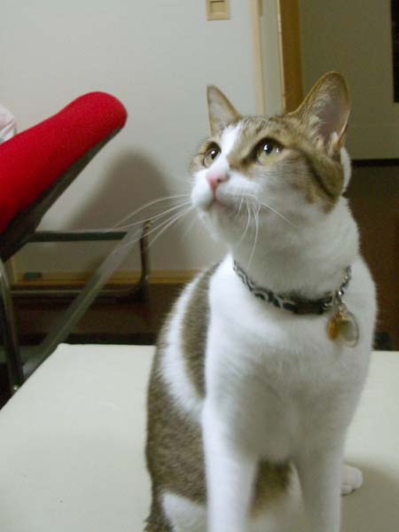 ぴっち♀が舐めようとするので、お皿は隣の椅子へ。