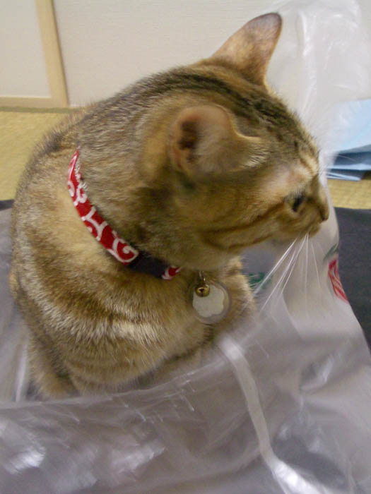 ビニール袋に入り、ぴっち♀がひとり遊びを始めました。