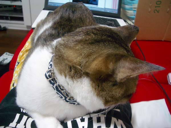 いつもの足でなく、上半身に来たぽっけ♂。