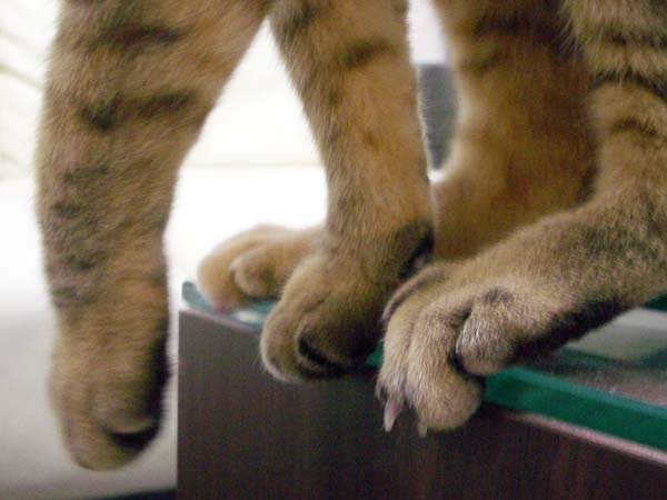 前足を伸ばすだけで何とか捕ろうとするものの、
