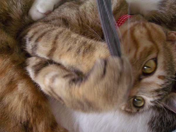 のストラップにじゃれてきました。ぽっけ♂ 「ボク、カプカプするです~。」