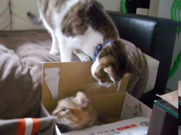 ぴっち♀入りの箱に、ぽっけ♂も突入