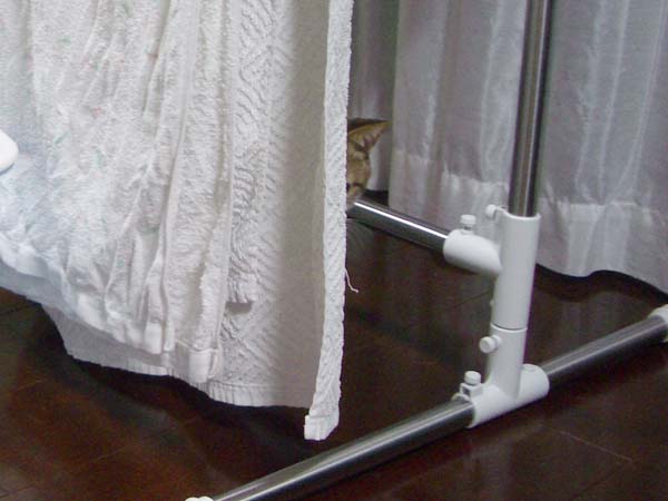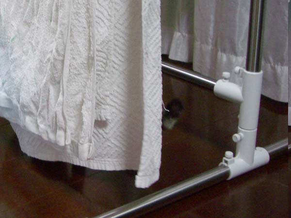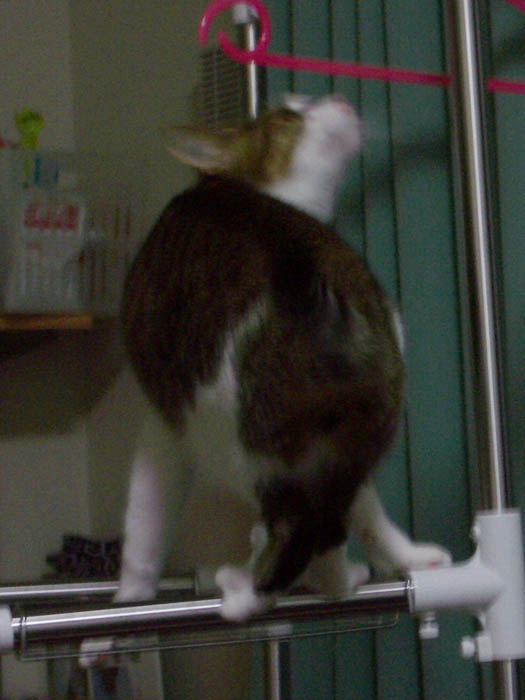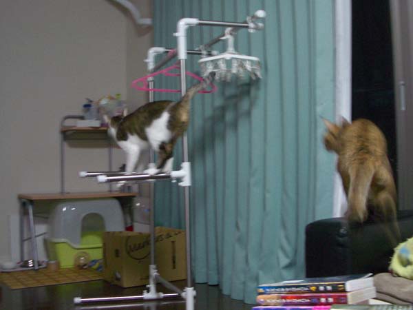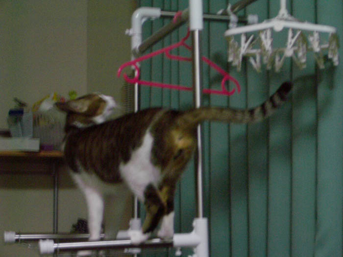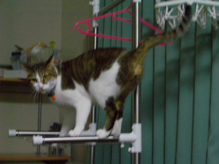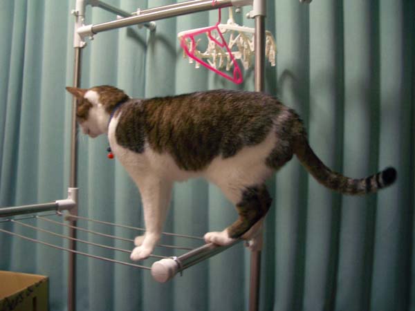 ぽっけ♂が洗濯干しに飛び乗っていました。