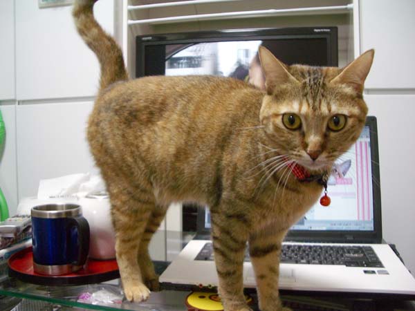 とノートPCの間に陣取ってのアピールです。ぴっち♀ 「ソンナノより、あたちを見るのニャ