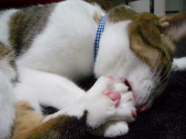 をあむあむとお手入れするぽっけ♂。程よい加減で噛んだりと色々です。