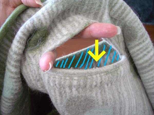 写真右下の、タオルの間です。