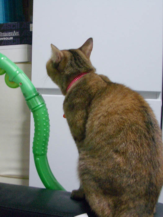 ハンガーに鼻先を近づけ、頑張っています。