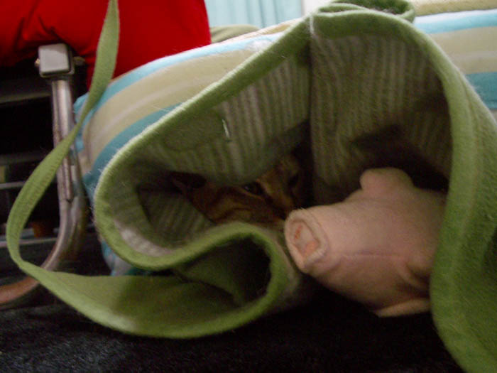 空いた隙間にブタさんぬいぐるみを入れてみました。